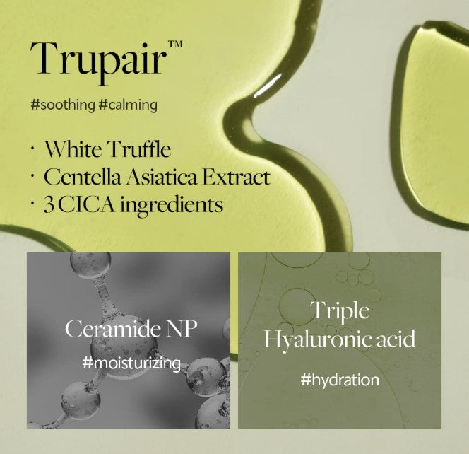 Trupair: d'Alba's exclusive ingredient with Italian white truffles, 3 CICA ingredients, and Centella Asiatica Extract soothes and calms the skin as the last step of your skincare