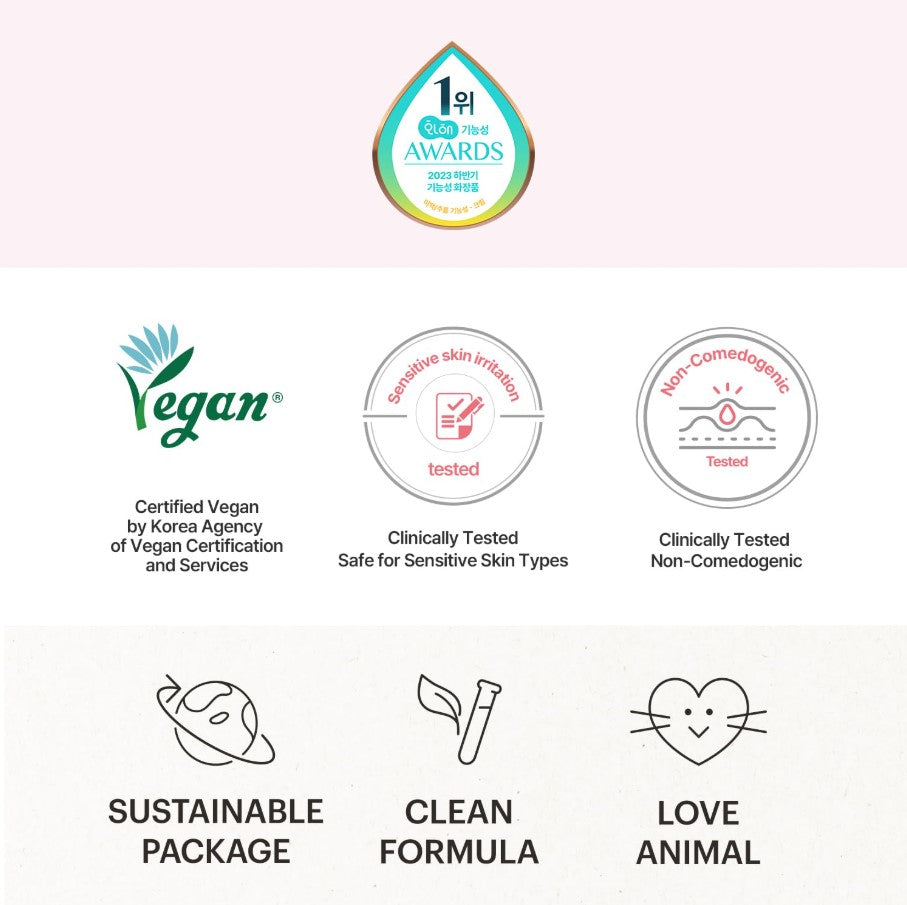 [CLEAN BEAUTY] Our goal is to pursue clean, safe, and sustainable beauty for the future, and so we made our products certified VEGAN and use FSC Certified packaging. All of our products include no animal-derived ingredients or animal testing (cruelty-free)