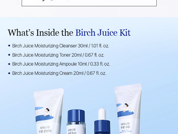 : Address dehydration with the BIRCH JUICE AMPOULE. Offering clear and transparent hydration, it soothes and nourishes your skin, providing a refreshed look as if you just washed your face.