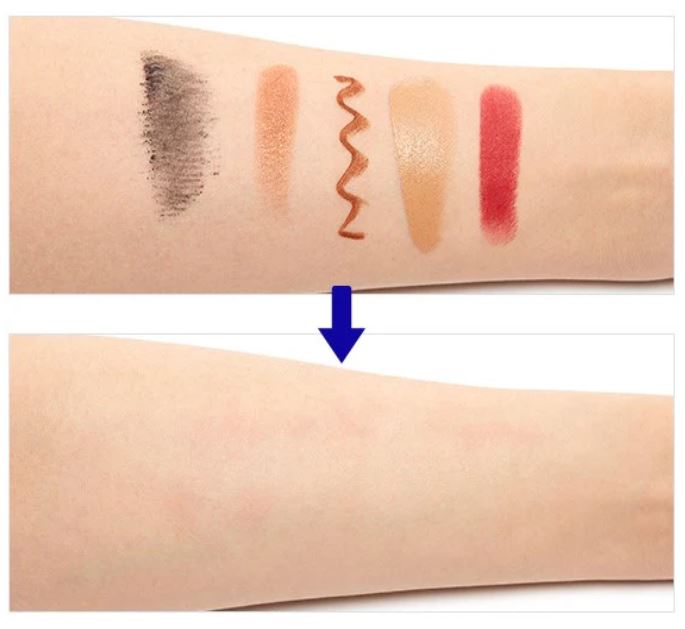 Micellar particles are included to gently erase base makeup to point makeup.