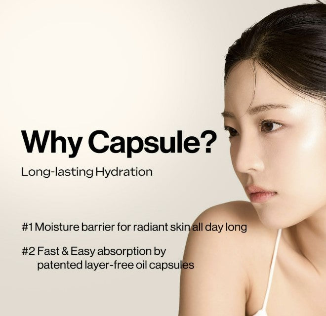 It provides clear and radiant skin with a light, non-sticky essence formula that blends quickly with vitamin capsules.