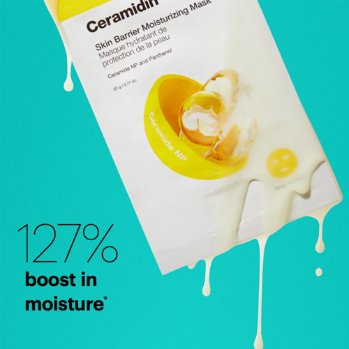 This moisturizing mask helps build up a strong skin barrier and moisturizes the skin within 20 minutes. - Formulated with a doubling of Ceramidin NP and Panthenol that build up a strong, solid skin barrier with skin elasticity. - Helps strengthen the skin barrier non-stop for 8 hours and has a 127% improvement in skin moisturization. - Finished the skin irritation test and is suitable for sensitive skin.