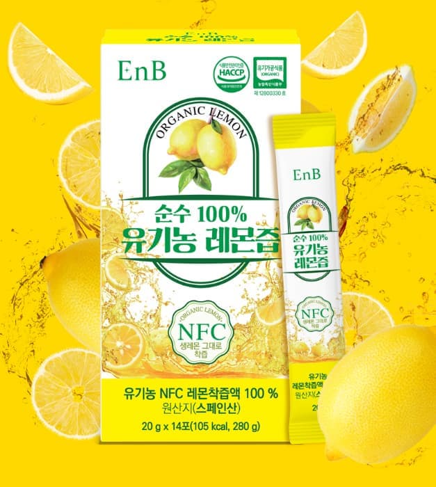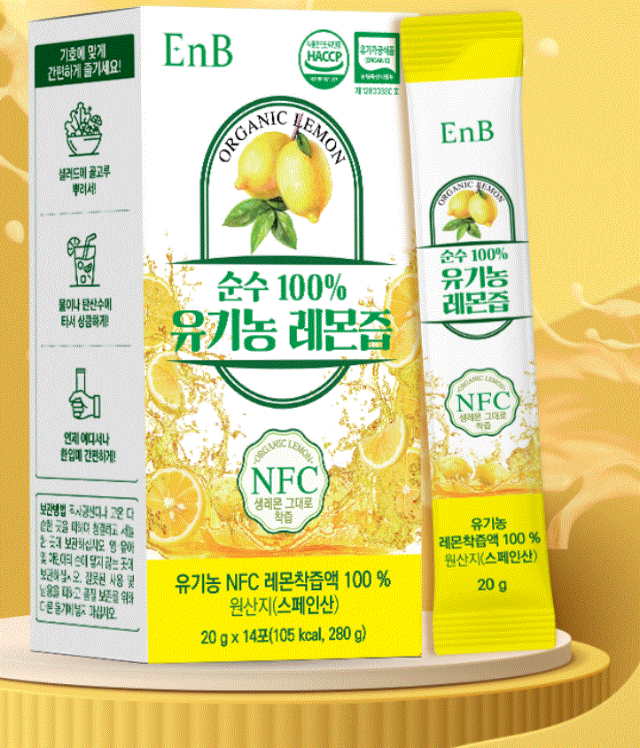 EnB Organic Lemon Juice, 280g (9.87oz), 20g x 14pcs, 100% Original Lemon Juice Stick Packets,
