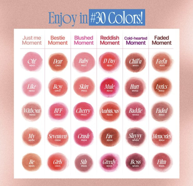 - Create your own mix and match with 30 rich colors discovered in six moments