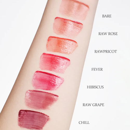 A raw glow gel tint gives refreshing juicy lips without stickiness.