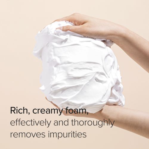 Dispense an appropriate amount of foam onto a palm or a cleansing puff, make sufficient bubbles and cleanse the face thoroughly.