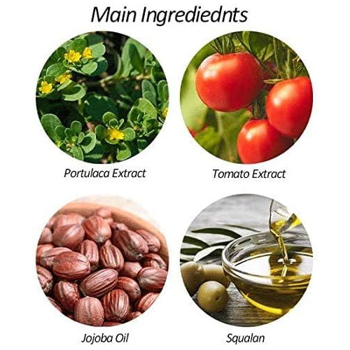 Enriched with portulaca extract, jojoba seed oil, and tomato extract.