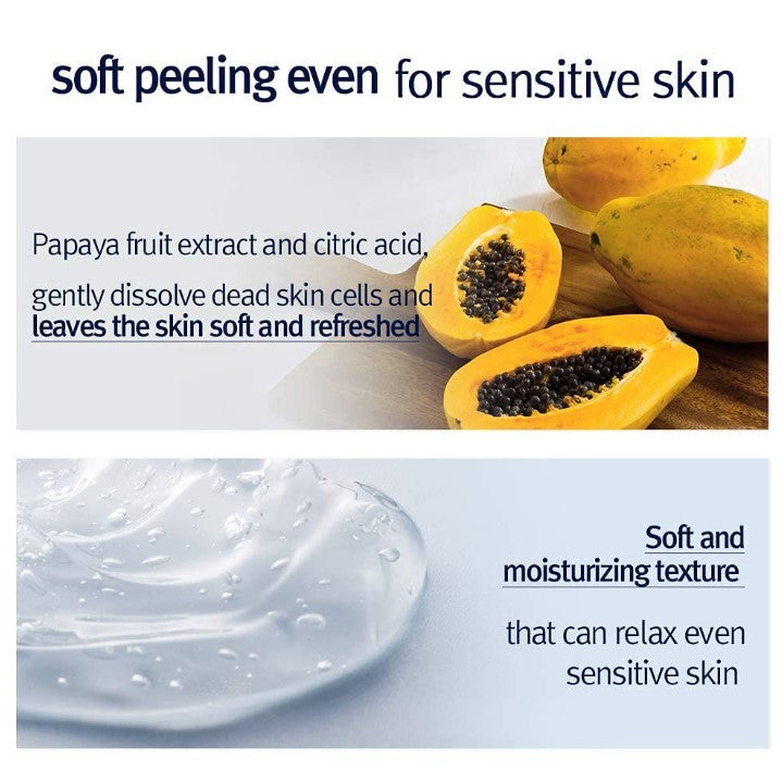 GENTLY SCRUB WITH NATURAL INGREDIENTS - The peeling gel contains Papaya fruit extract and Citic Acid. Instead of other products' artificial dead cells for visual effect, it's genuine natural based formula smoothly removes impurities from skin's surface, visibly reduces pores sizes and leaves the skin feeling soft without any irritating and stinging feeling.