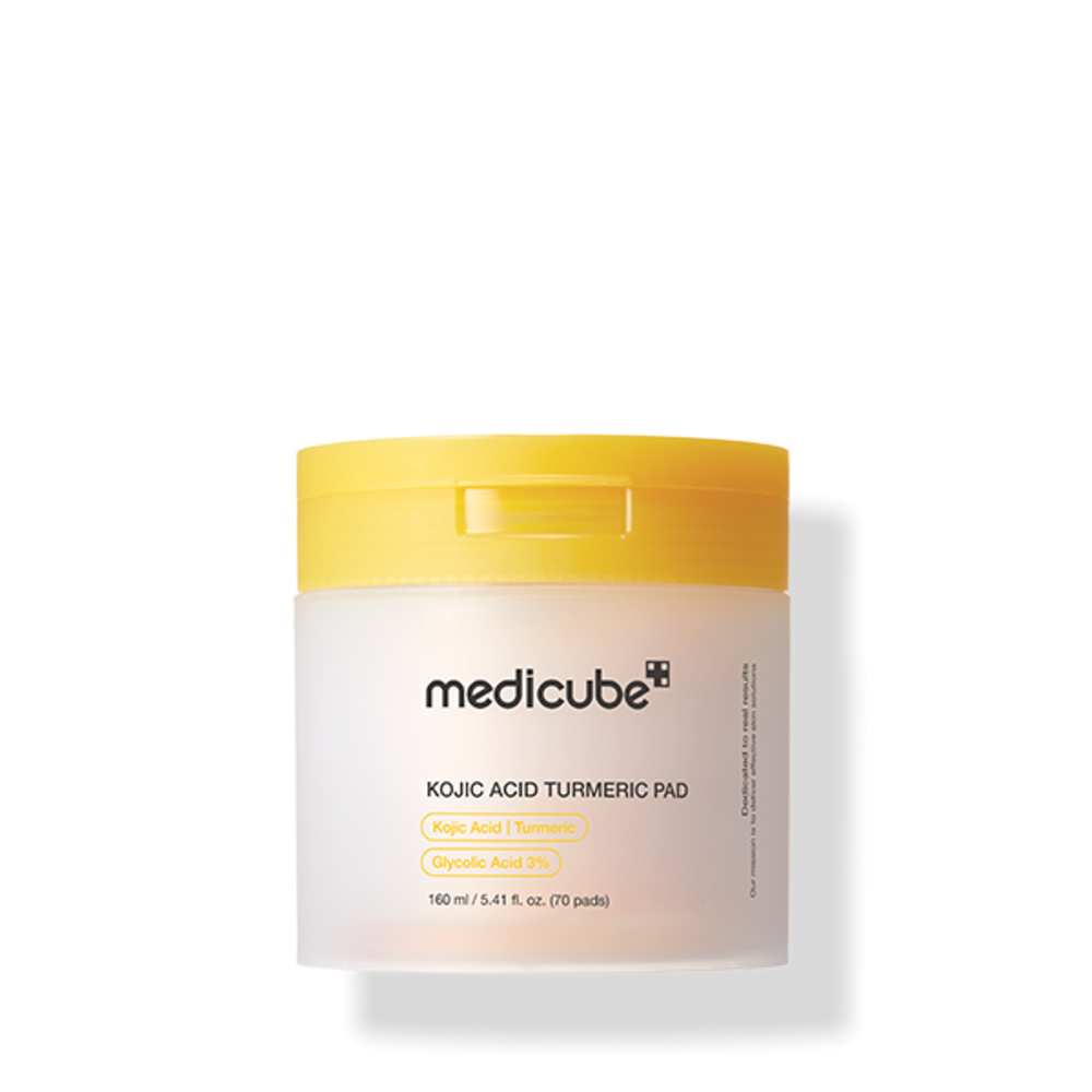 Medicube - Kojic Acid Tumeric Pad 70 pads offer a powerful blend of Kojic Acid and turmeric to enhance skin brightness and improve complexion. These exfoliating pads gently remove dead skin cells and diminish the appearance of dark spots, giving skin a radiant and even tone.