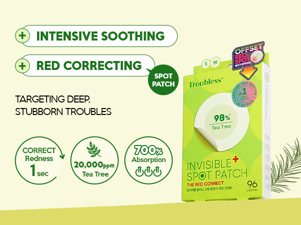 TARGETED REDNESS CARE. Tea Tree Extract (98%) helps calm visible redness, making breakouts less noticeable. Its soothing properties work fast, providing a gentle way to keep troubled areas looking smooth. These spot patches offer a discreet and easy way to manage troubled skin.