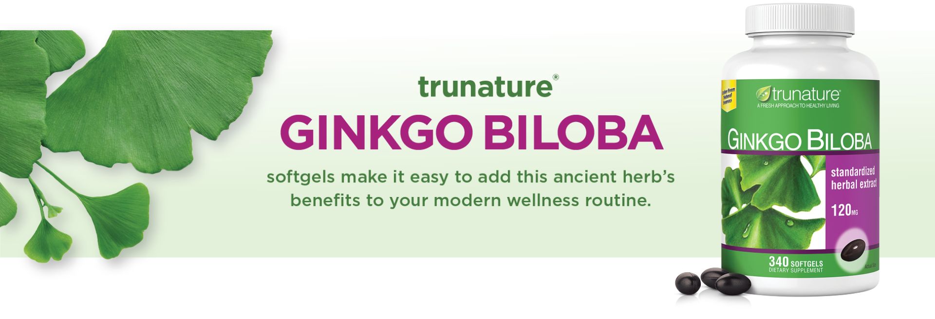 Trunature® Ginkgo Biloba provides you with supplemental nutrition. Our formula is standardized for the active constituents found in the leaves of the Ginkgo tree.